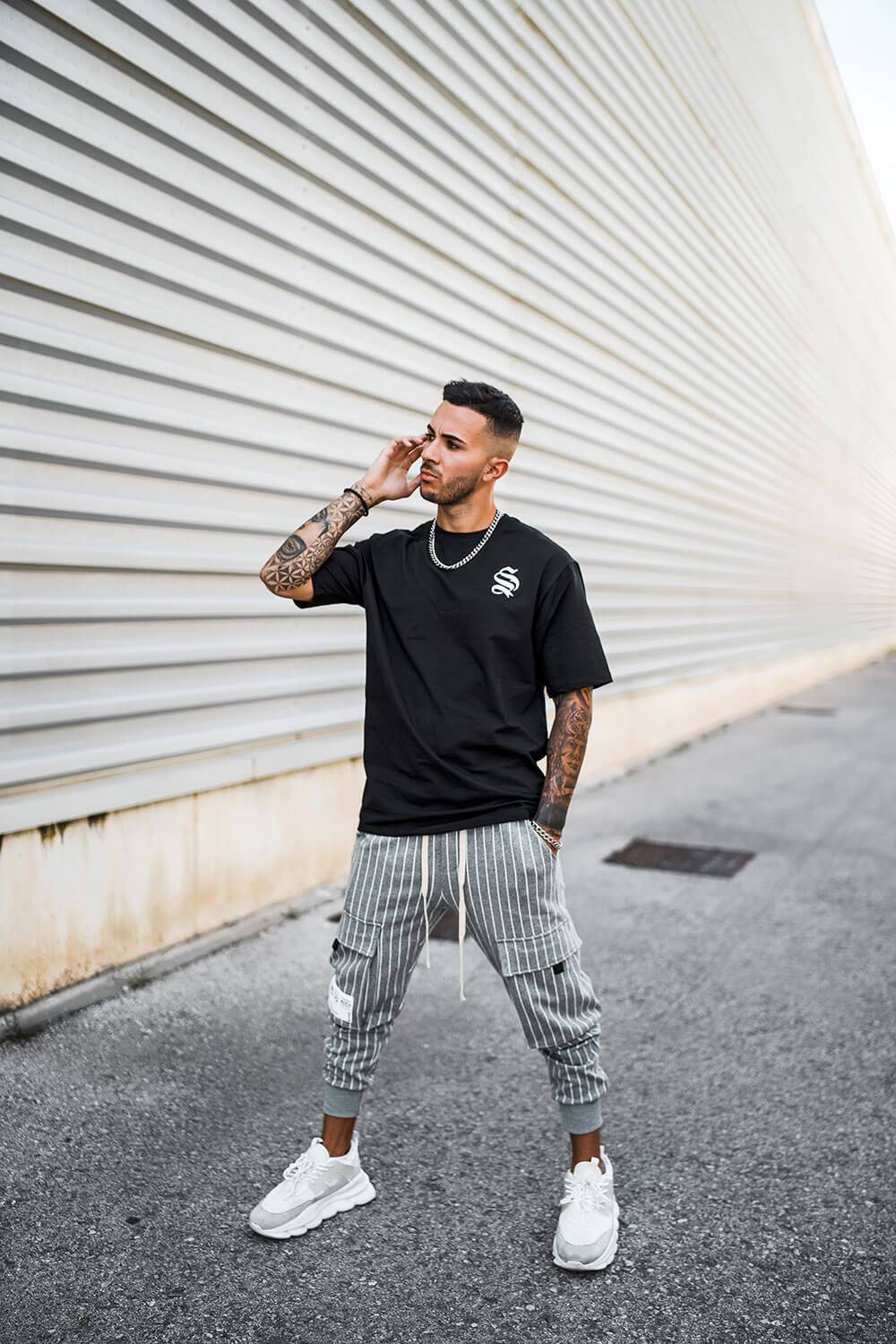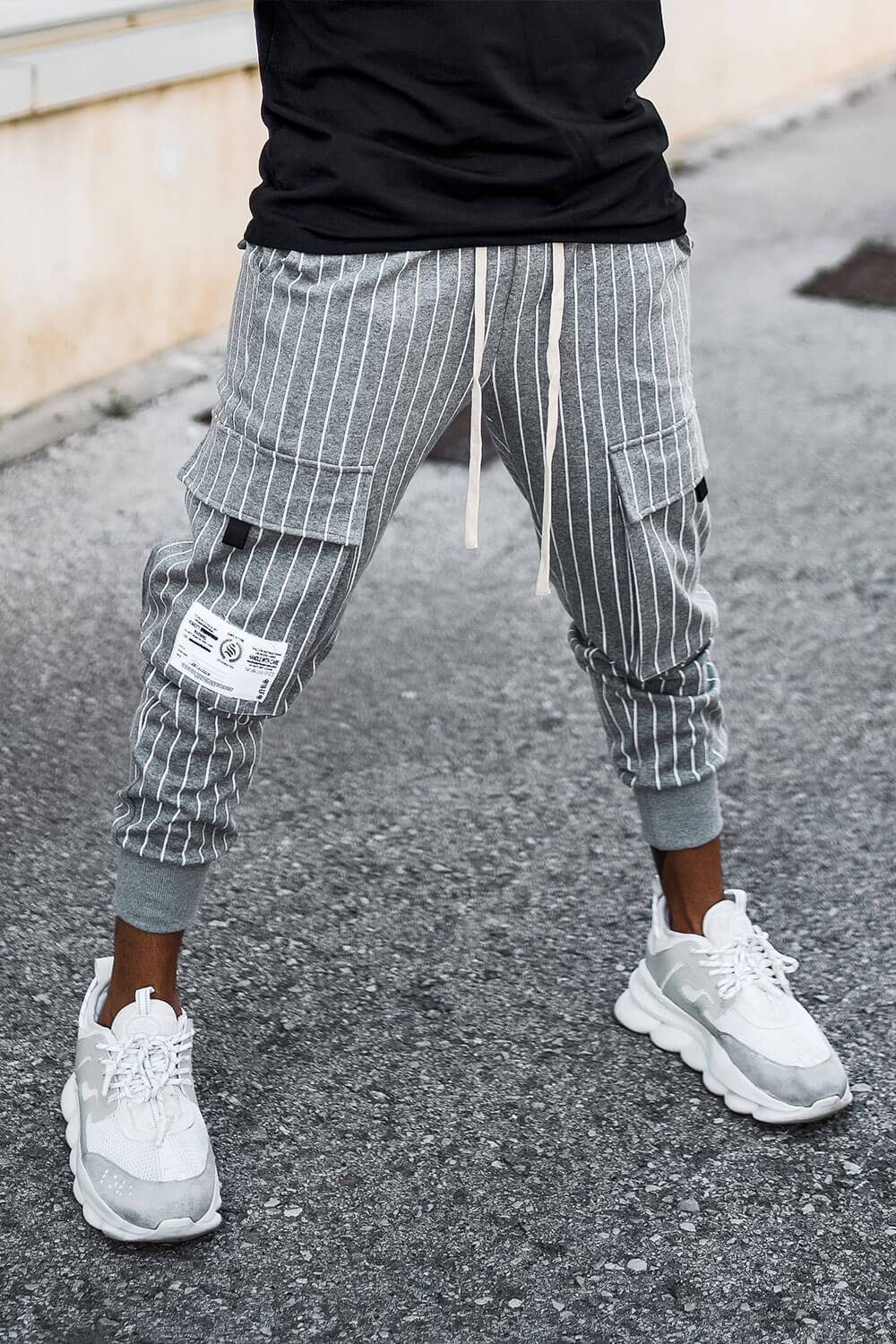 Cargo Utility Pants - Grey Pinstripe