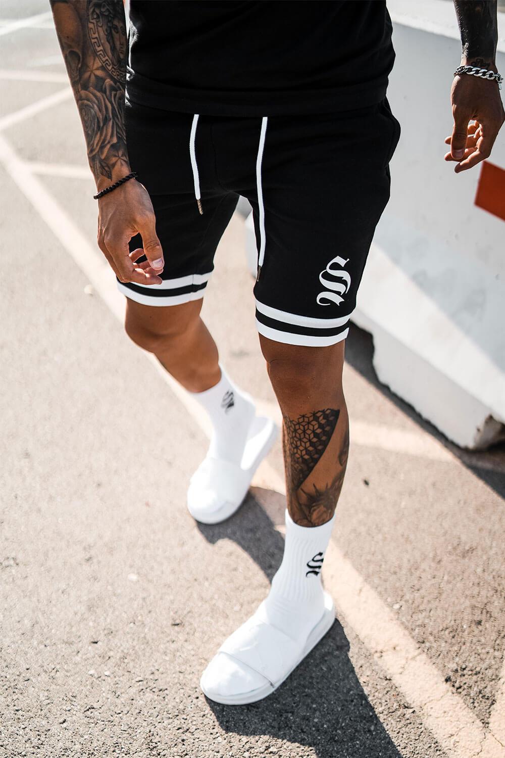 Black College Ringer Shorts