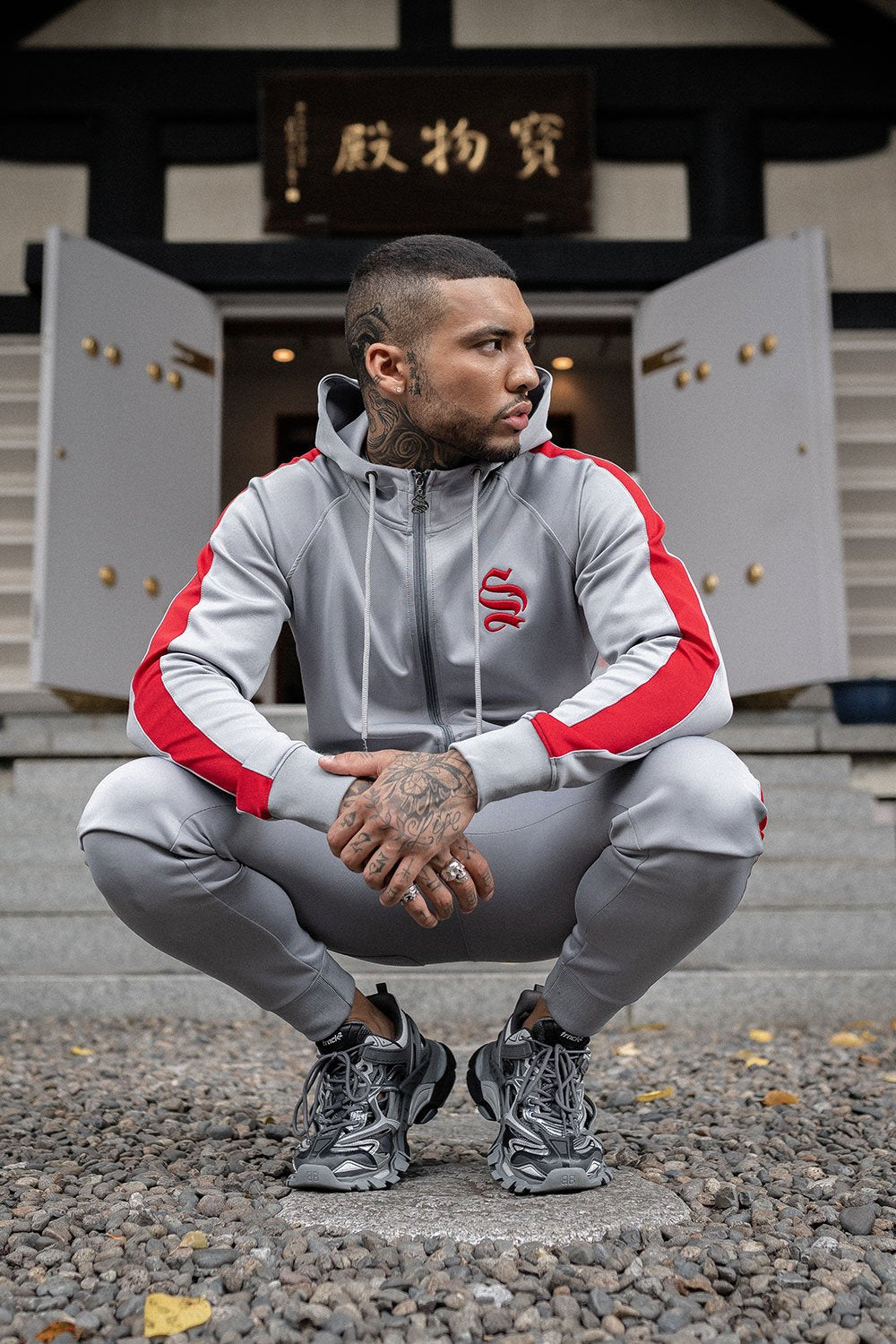 Core Poly Hoodie - Silver/Red