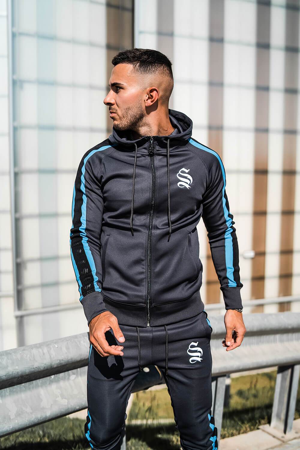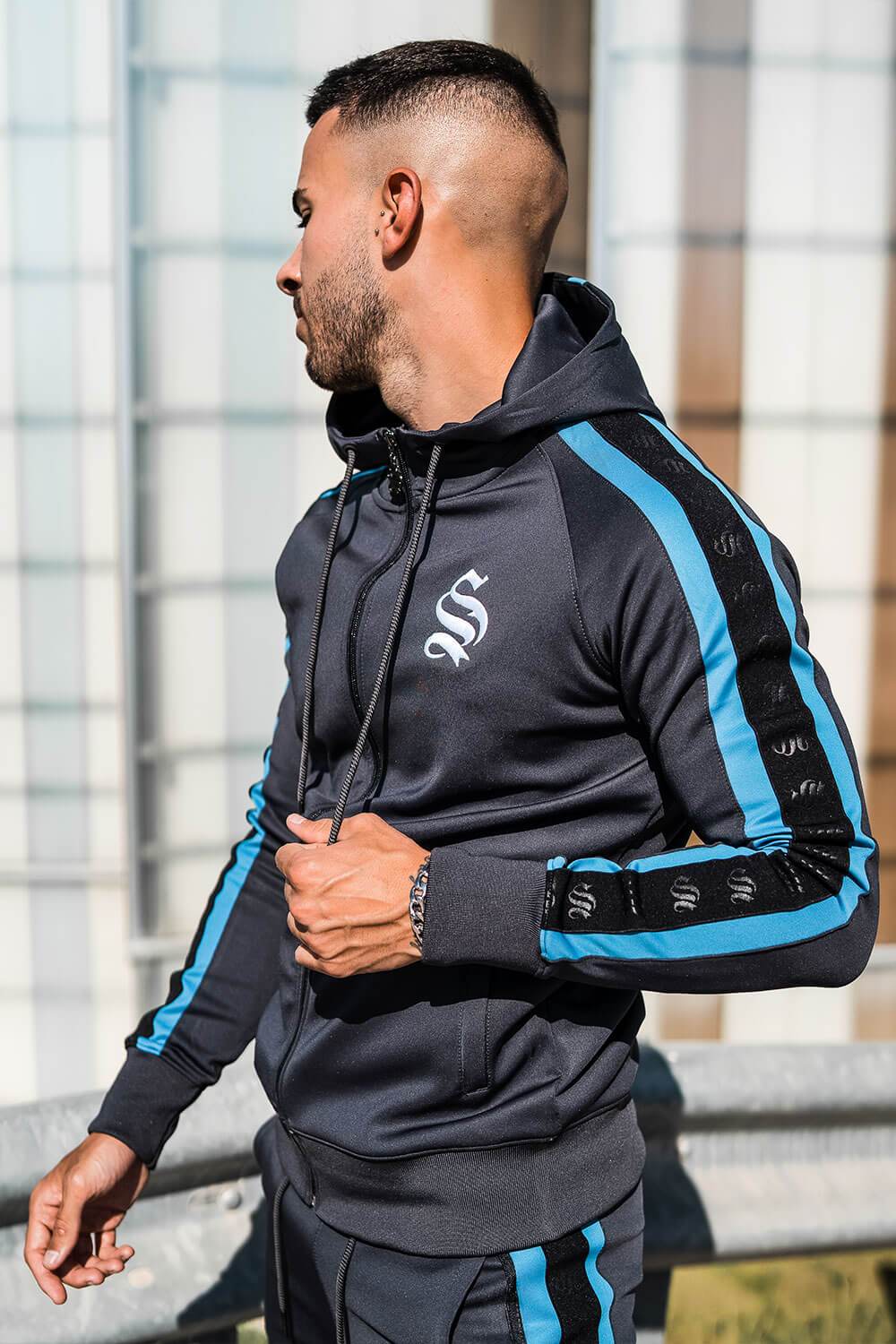 Tape Raglan Poly Hoodie - Dark Grey/Blue