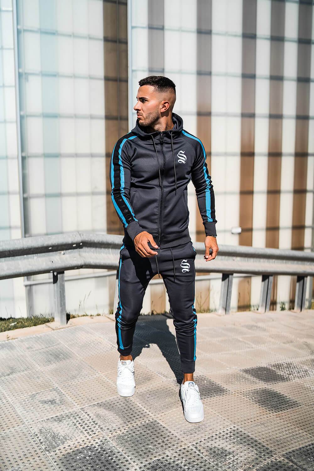 Dark Grey/Blue Tape Raglan Poly Hoodie