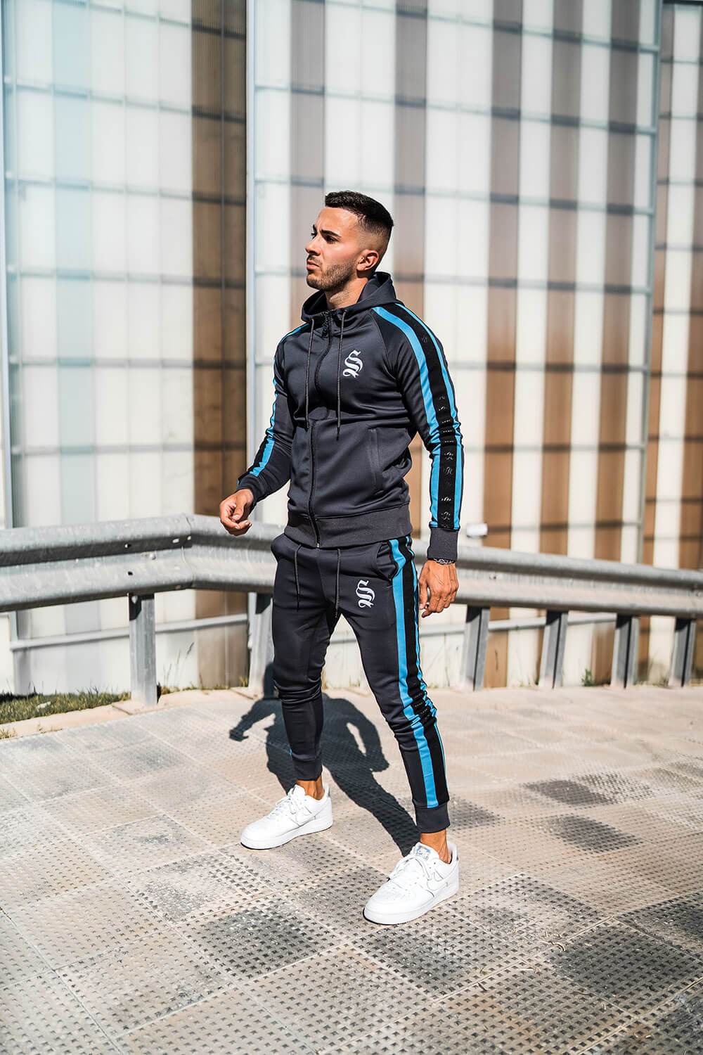 Tape Raglan Poly Joggers - Dark Grey/Blue