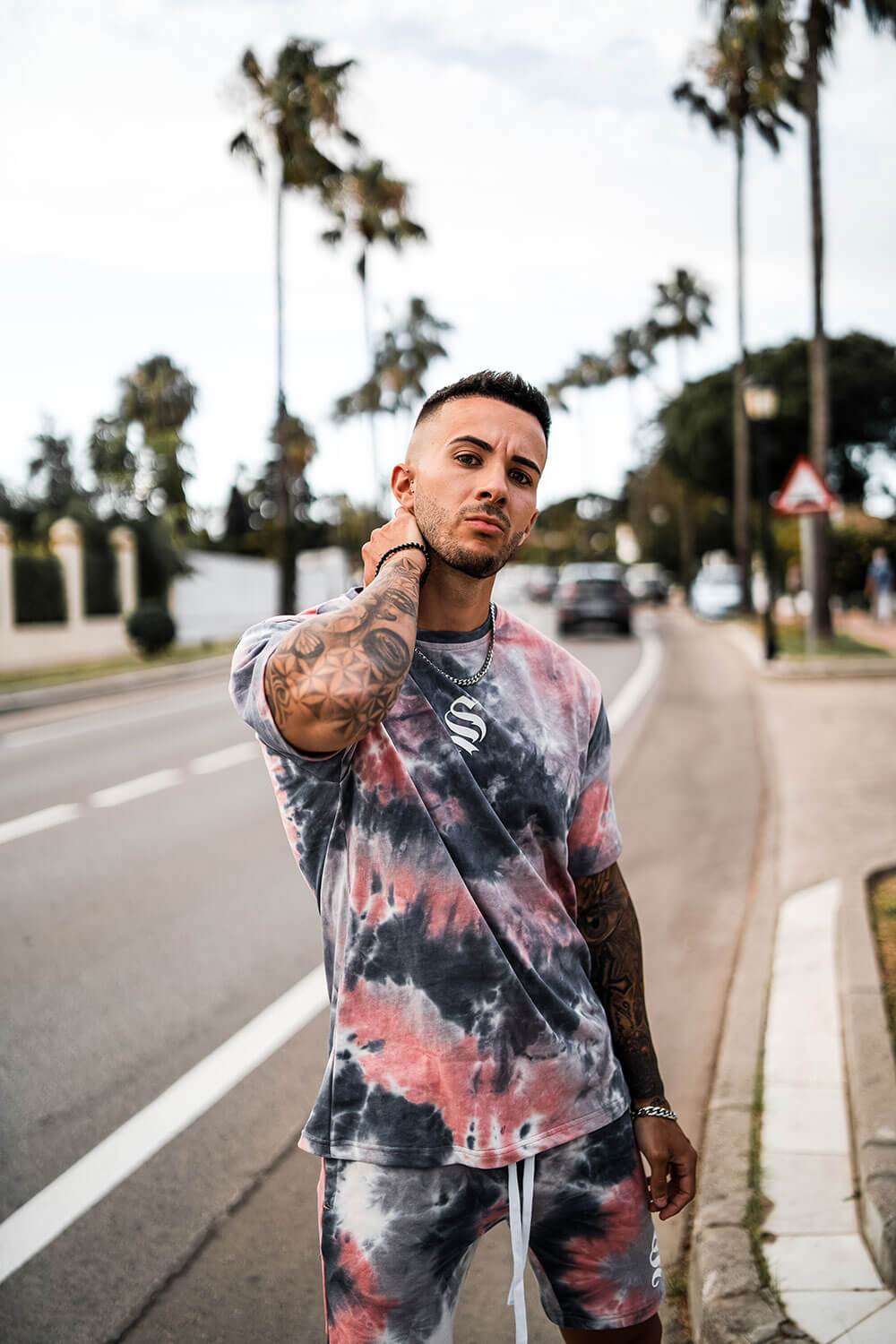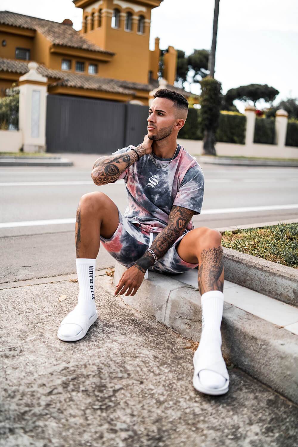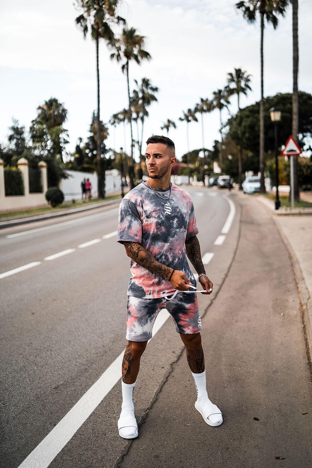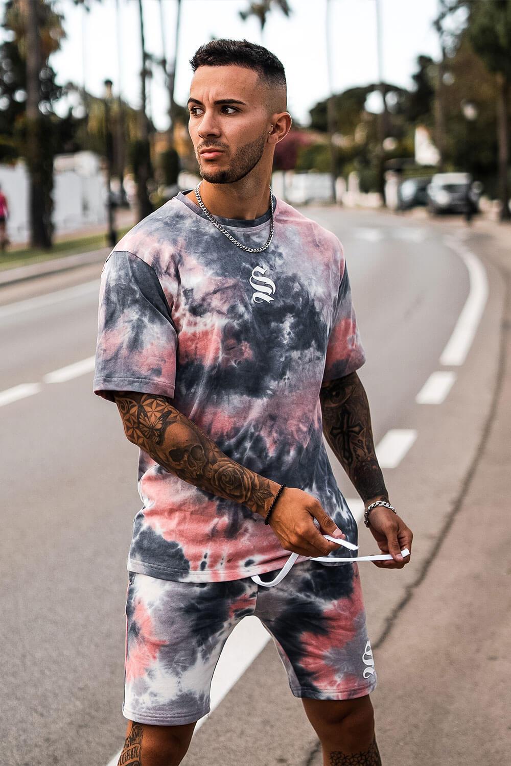 Tie Dye Drop Shoulder Tee - Navy/Orange